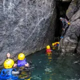 During your Coasteering you’ll be taught how to make your way along Pembrokeshire cliffs and coastline by means of climbing, jumping, traversing, swimming and diving. You’ll spot incredible marine life, negotiate natural rapids, sluices and whirlpools before attempting adrenalin-fuelled sea cliff jumps. Don’t despair if this sounds too extreme; we always have alternative options for the slightly more reserved. There’s something for everyone and it's a no-pressure tour. The activity is tailored to the group's preferred level of intensity.