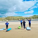 We arrived at Freshwater West to beautiful blue skies and perfectly groomed waves, once we met everyone at the Surf School van, got everyone kitted out (and had a good chin wag) a quick team photo, and got down to business.