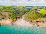 A remote, slightly curved, east-facing sandy beach near Stackpole Quay.