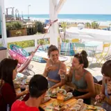 But nothing could dampen our spirits. We finally arrived at A-Frame Surf Camp, a stunning beachfront spot in El Palmar, where we were greeted with a delicious welcome dinner and the warm company of our fellow Salty Sisters from Wales, France, Germany, and Switzerland. After a long day, we hit the hay early, buzzing for our first surf session.
