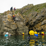 One of our team, SUP and Surf instructor Louise, had her first coasteering experience this year with a group of local mums. “I can’t quite describe how amazing it was to drop the children off at school, and within an hour, be riding the swell into caves and jumping off rocks higher than I thought myself capable of! My lasting memories of the experience are laughing - we just didn’t stop laughing - sunshine, sparkling seas and well, feeling very much like a child again to be honest”.