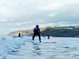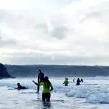 As soon as we had finished pulling on the thicker suits and boots and having a good old natter in the car park we all trooped down to the sand and split into two groups of beginners and improvers, with our amazing coaches Jenny, Lauren, Gemma and our fantastic volunteer Lizzie on hand to dish out the tips.